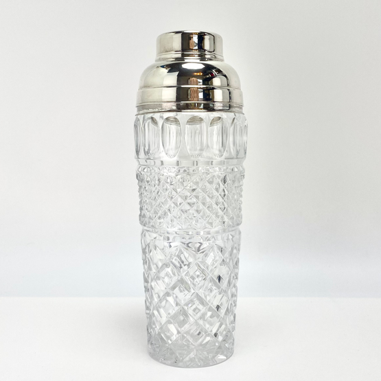 German Vintage Lead Crystal Cocktail Shaker w. Silverplated Lid