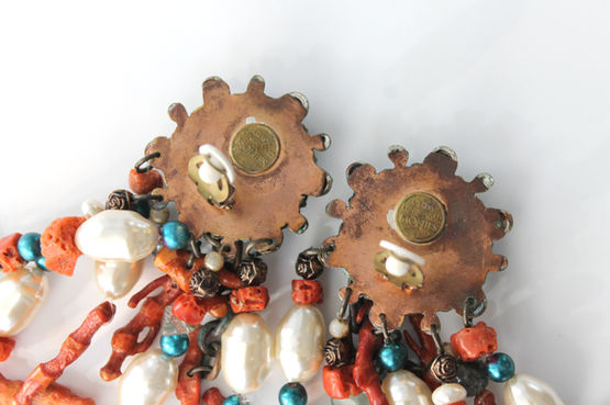 Rare Bohemian Statement Earrings with Coral by Monies/Gerda Lynggaard
