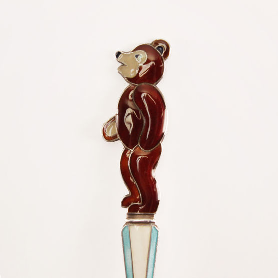 USSR Russian Child's Silver Spoon with Enamel Bear Decoration (1972)